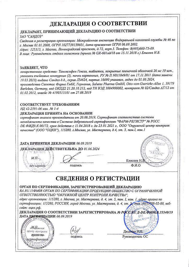 Срок годности Тамоксифен Гексал